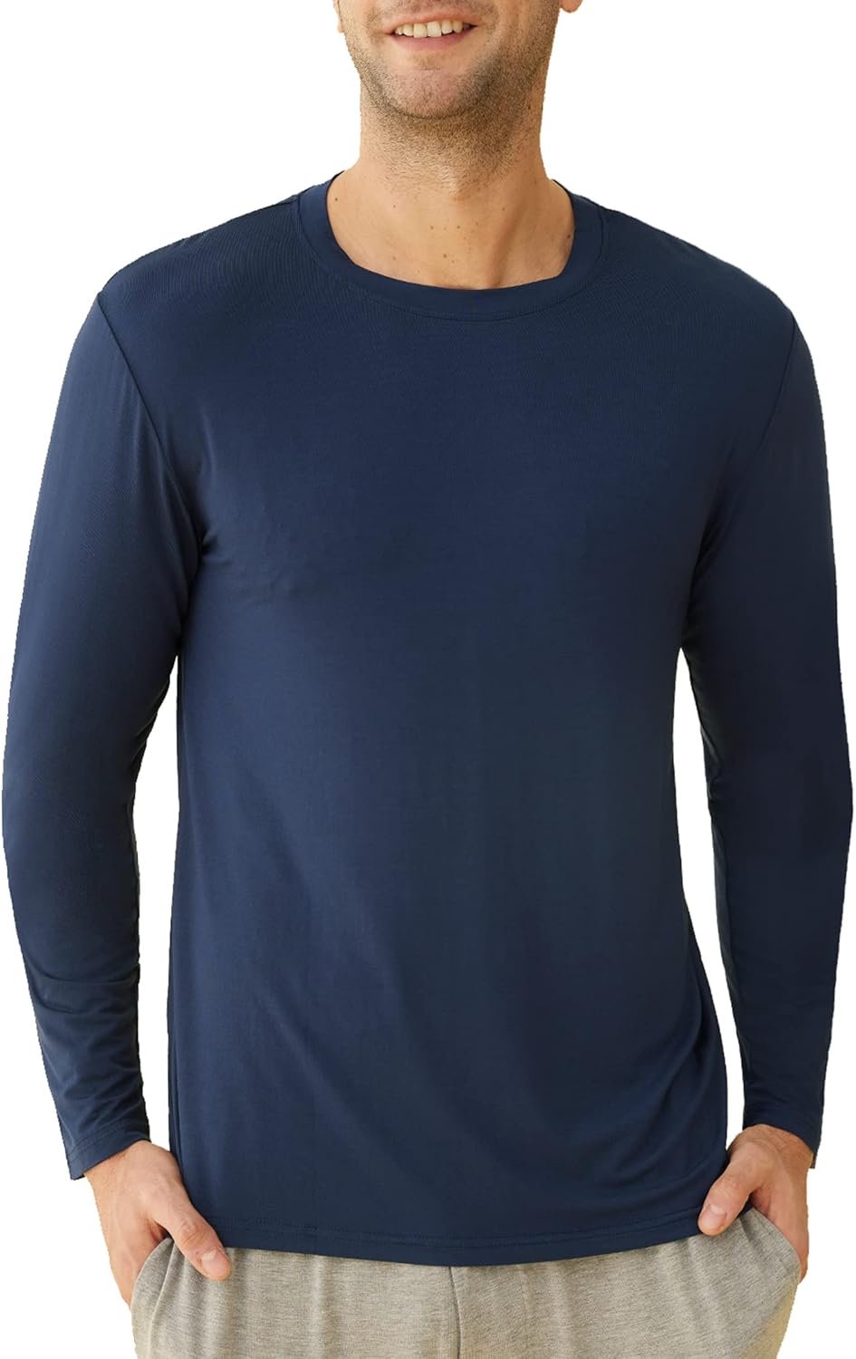 Men’s Viscose Pajama Top Long Sleeves Sleep T-Shirt