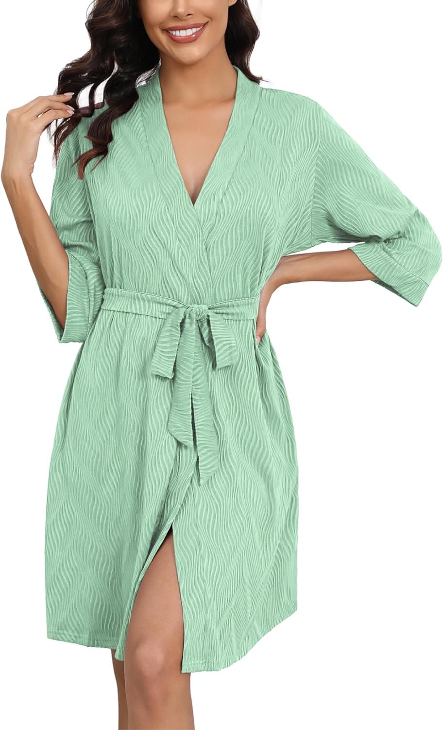 - Comfy Textured Robe: Soft knit robe, stretchy, durable and skin-friendly. Our kimono robe offers unrivaled comfort and warmth along with knitted material. The fabric texture design makes the ribbed bathrobe more distinctive and fashionable.