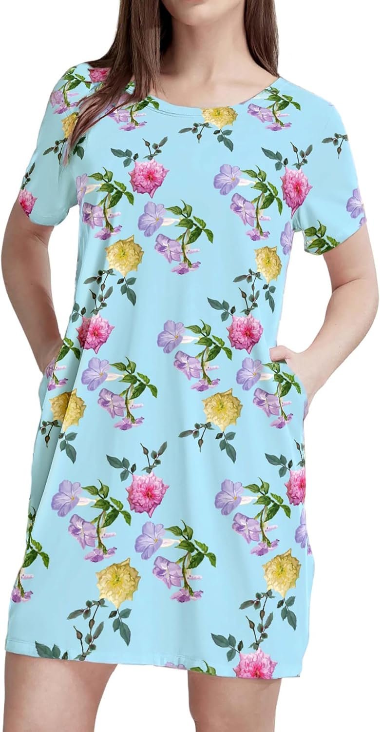 - Adorable Design: Featuring a loose and roomy design short sleeves, Nightshirts Loungewear with Pockets, One dress for many occasions.