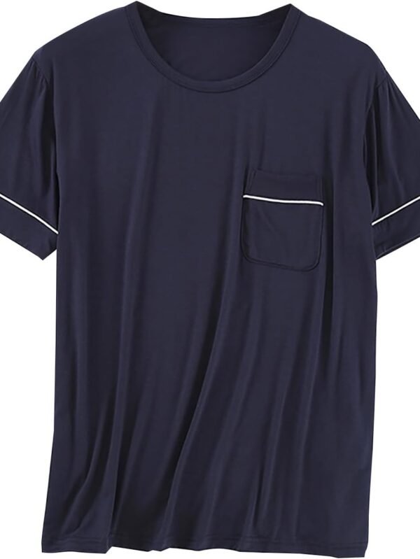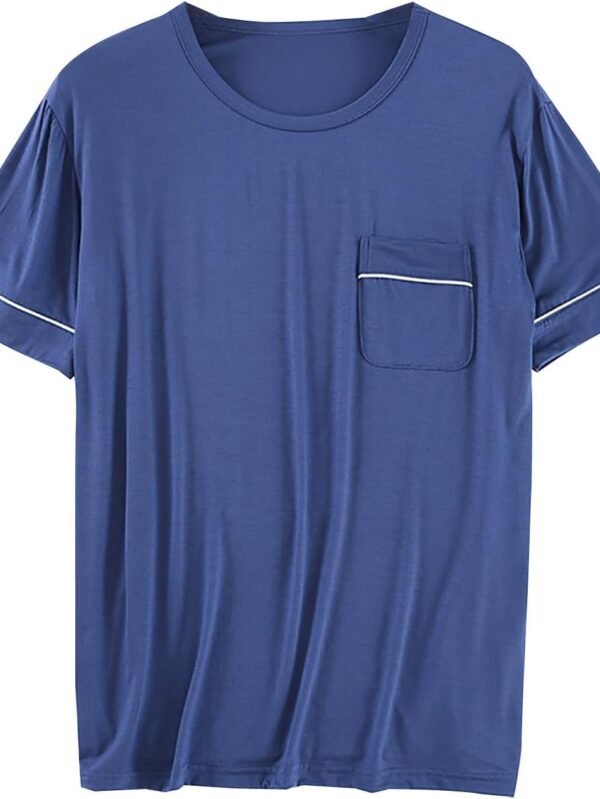 Mens Sleep T-Shirt V-Neck Pajamas Casual Loose Fit Undershirts Base Layer Tops Short Sleeve Loungewear