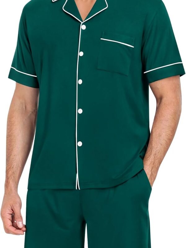 Mens Pajama Set Short Sleeve 2 PCS Sleepwear Button Down Soft Loungewear Modal Set Pj Set with Pockets S-3XL